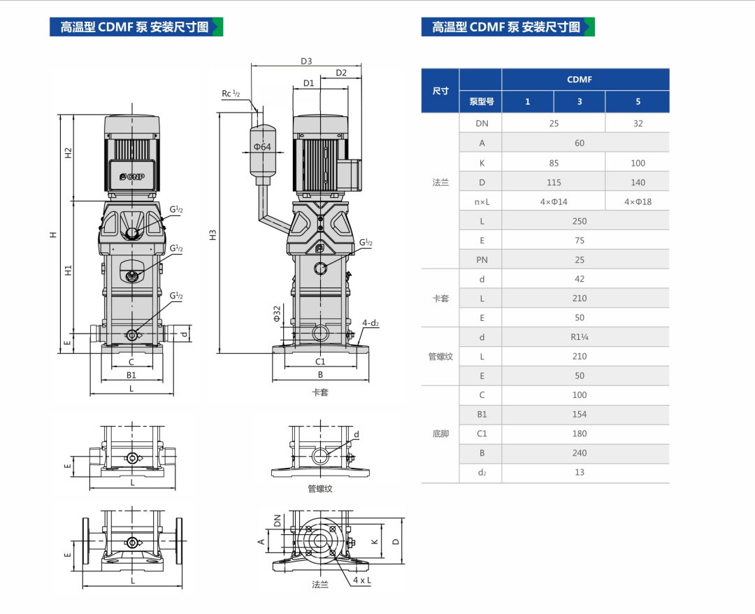 本產(chǎn)品在CDMF輕型立式多級(jí)離心泵的結(jié)構(gòu)基礎(chǔ)上,增加了冷卻裝置,適用于最高溫度為+180℃的液體。液體流經(jīng)冷卻裝置到達(dá)機(jī)封腔處可冷卻至+120℃或更低,有效保證機(jī)械密封的安全工作溫度,同時(shí)避免高溫對(duì)電機(jī)的損害影響。