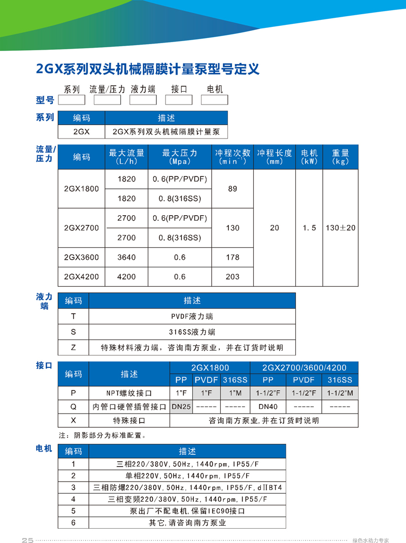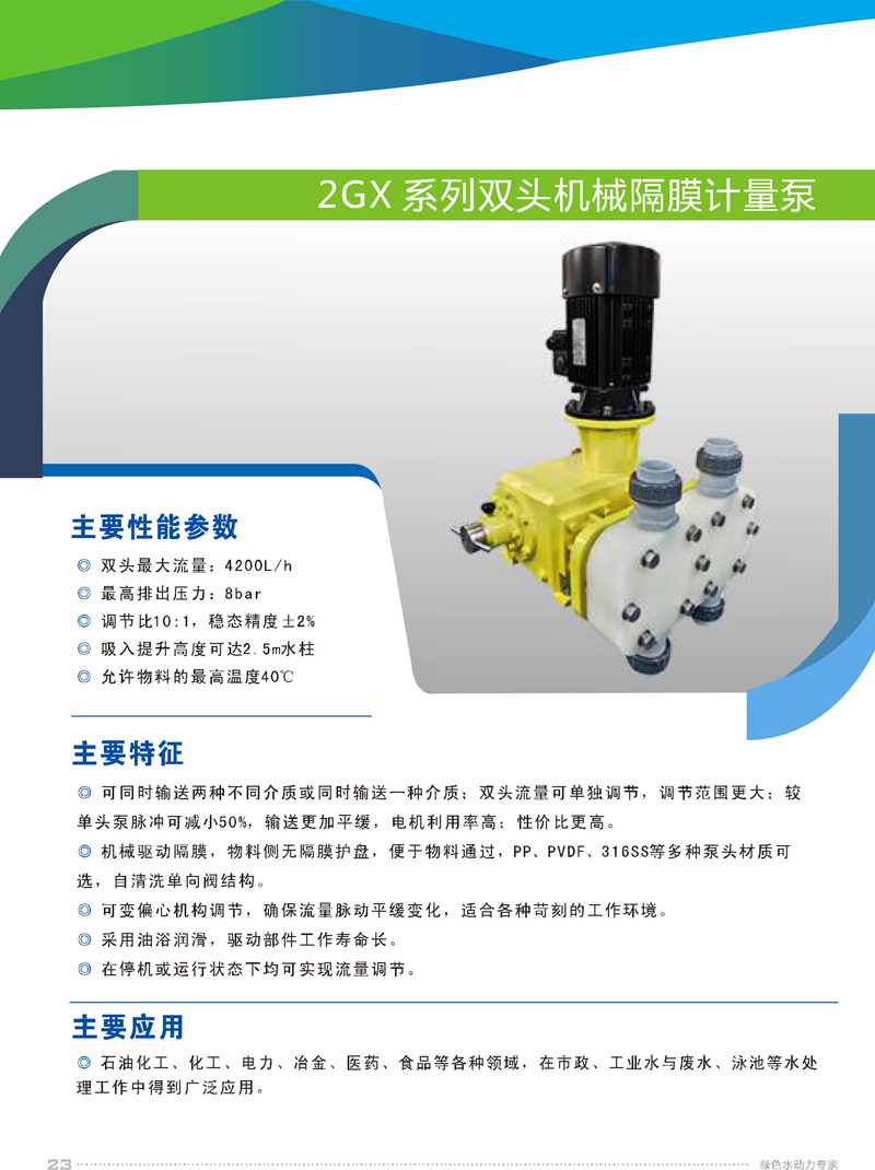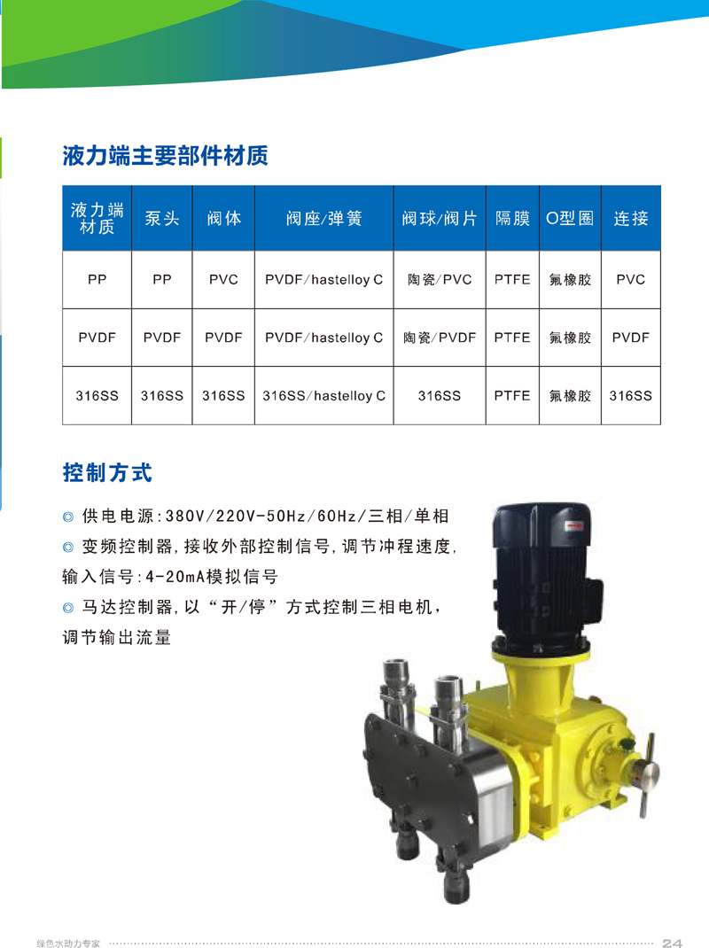 2、機械驅動隔膜,物料側無隔膜護盤,便于物料通過,PP、PVDF、316SS等多種泵頭材質可選,自清洗單向閥結構。