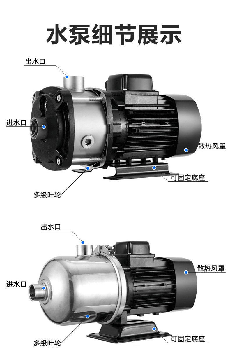 南方CHL,CHLK,CHLF(T)非自吸輕型臥式多級離心泵,葉輪導葉采用不銹鋼板沖壓焊接制成,配加長軸電機,軸向入口和徑向出口。