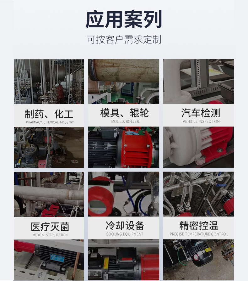 空調系統、冷卻系統、工業清洗水處理(水的凈化)、水產養殖、施肥/計量、系統環境應用、(其他)許多專門特定用途